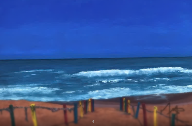 The big paintings in the Namibia Moments Collection certainly required that I sketch the image, so I had the correct proportions and placement of such things as the colourful stair posts in Walkway to the Sea. See my progress in photos 1-4