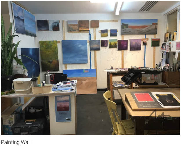 The over-riding value and enjoyment of my studio is derived from the people I share it with. We are all painters who work mostly in silence, chatting intermittently about painting, our work, and life outside. Sometimes there is a dog visiting who needs an ear scratch, or a birthday cake appears for a celebration. Sometimes the place is full and other times I have it to myself.