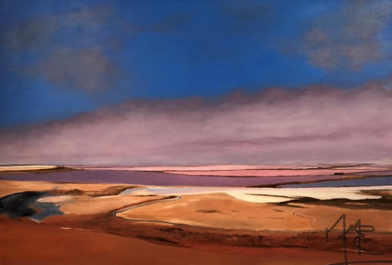 To create the colours for the two Salt Lakes paintings, I developed a sample board (photo 5) where I could record how I made them, and make sure they were consistent with my source photo. I also lowered the intensity of the pink cloud above the horizon (photos 8 and 9) as I felt it was taking away from the salt lakes.