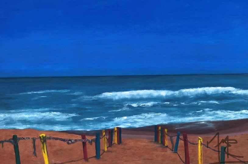 The big paintings in the Namibia Moments Collection certainly required that I sketch the image, so I had the correct proportions and placement of such things as the colourful stair posts in Walkway to the Sea. See my progress in photos 1-4