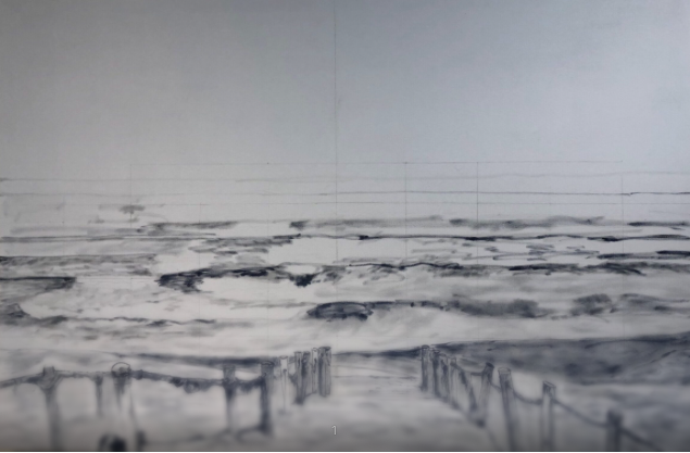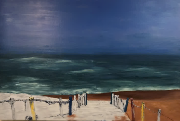 The big paintings in the Namibia Moments Collection certainly required that I sketch the image, so I had the correct proportions and placement of such things as the colourful stair posts in Walkway to the Sea. See my progress in photos 1-4